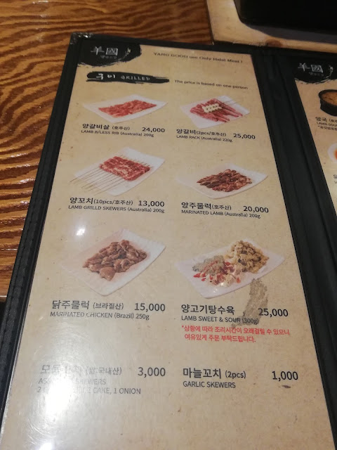 tak nampak penuh pulak kan nama kedainya.. Nama kedai ni ialah Yang Good Korean BBQ Lamb.. dekat Gangnam tak salah aku.. kalau korang google pun jumpa rasanya.. lamb dia tak rasa lamb sangat..